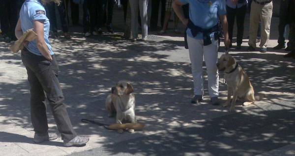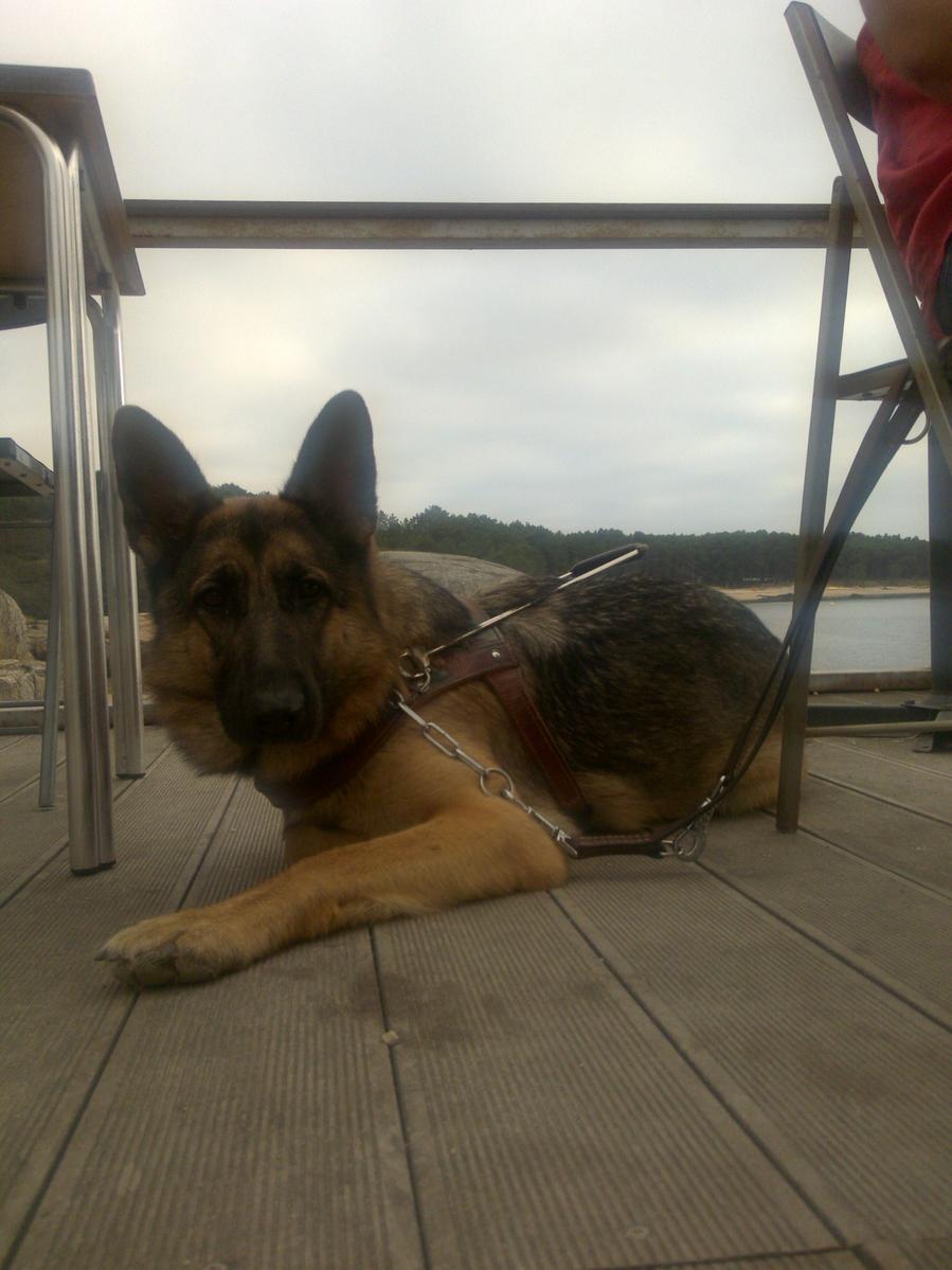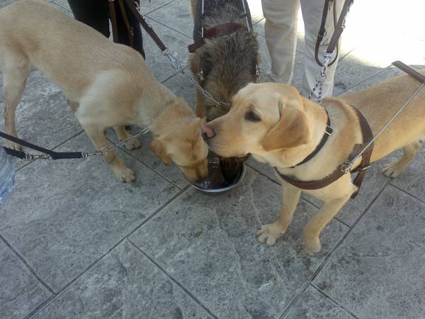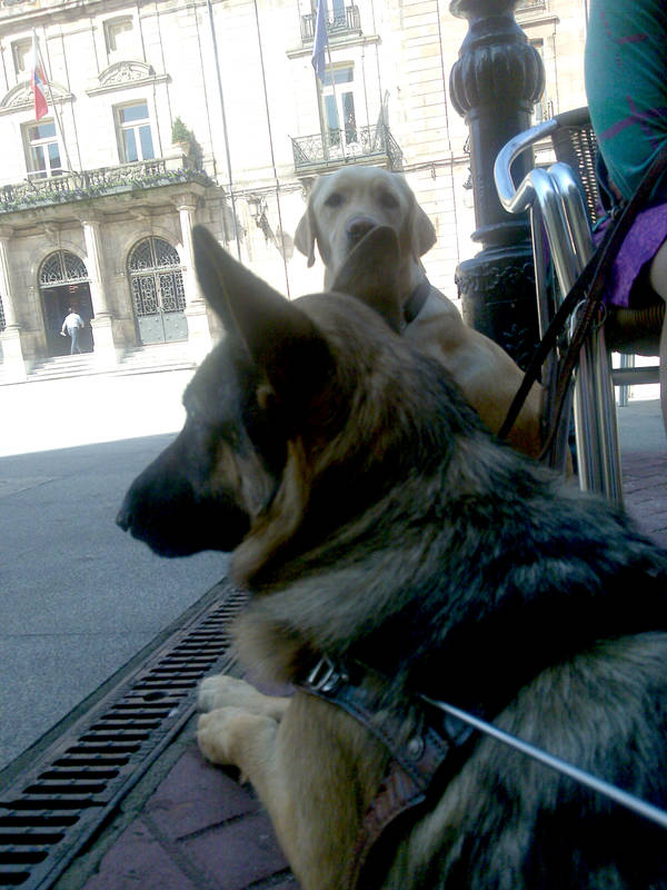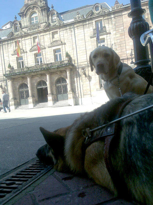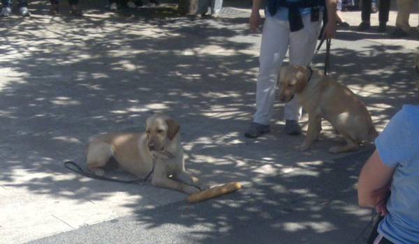 Los perros guía sufren estrés. Su trabajo es de alta responsabilidad y lo saben. Son conscientes del riesgo que asumen cada vez que salen a la calle con sus dueños. Por eso necesitan concentración. No son perros de compañía, aunque la dan. Tampoco con perros preparados para jugar con los niños, aunque pueden hacerlo. Tienen claro su cometido desde que nacen. Su inteligencia, similar a la de una criatura de 6 años, está dirigida a identificar y salvar obstáculos. Y no suelen fallar. Si se equivocan es por culpa del propietario. «Si tu no te orientas estresas al perro», asegura Francisco Martín mientras sujeta a Ibana, de 7 años. Ibana también fue adiestrada en Rochester. Francisco fue a EE UU para realizar el cursillo, gastos sufragados por la Once. «Hace 5 años que la tengo. Necesita mucho cariño, pero a la vez tenemos que ser contundentes porque se nos deterioran». Y el deterioro significa que dejan de obedecer. A veces precisan un readiestramiento «y todo por culpa del usuario por no motivarlos suficientemente».