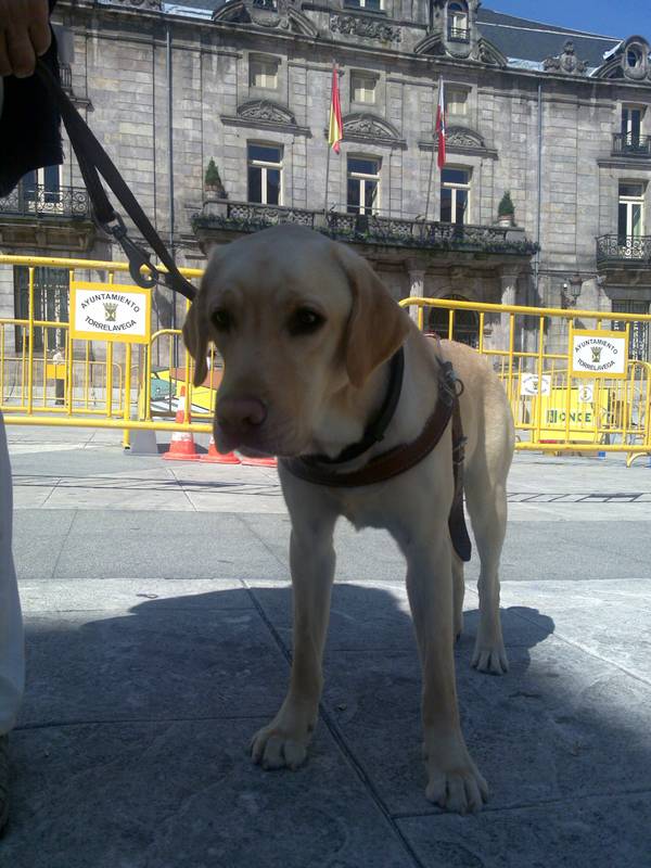 De Rochester vino Sundance, una perra labrador de dos años que ayuda a Amando Martínez a realizar su trabajo. «Vivo en Navatejera y cuando salimos le digo: ‘A la Once’, y viene derecho, no necesita más órdenes. Nunca se equivoca».