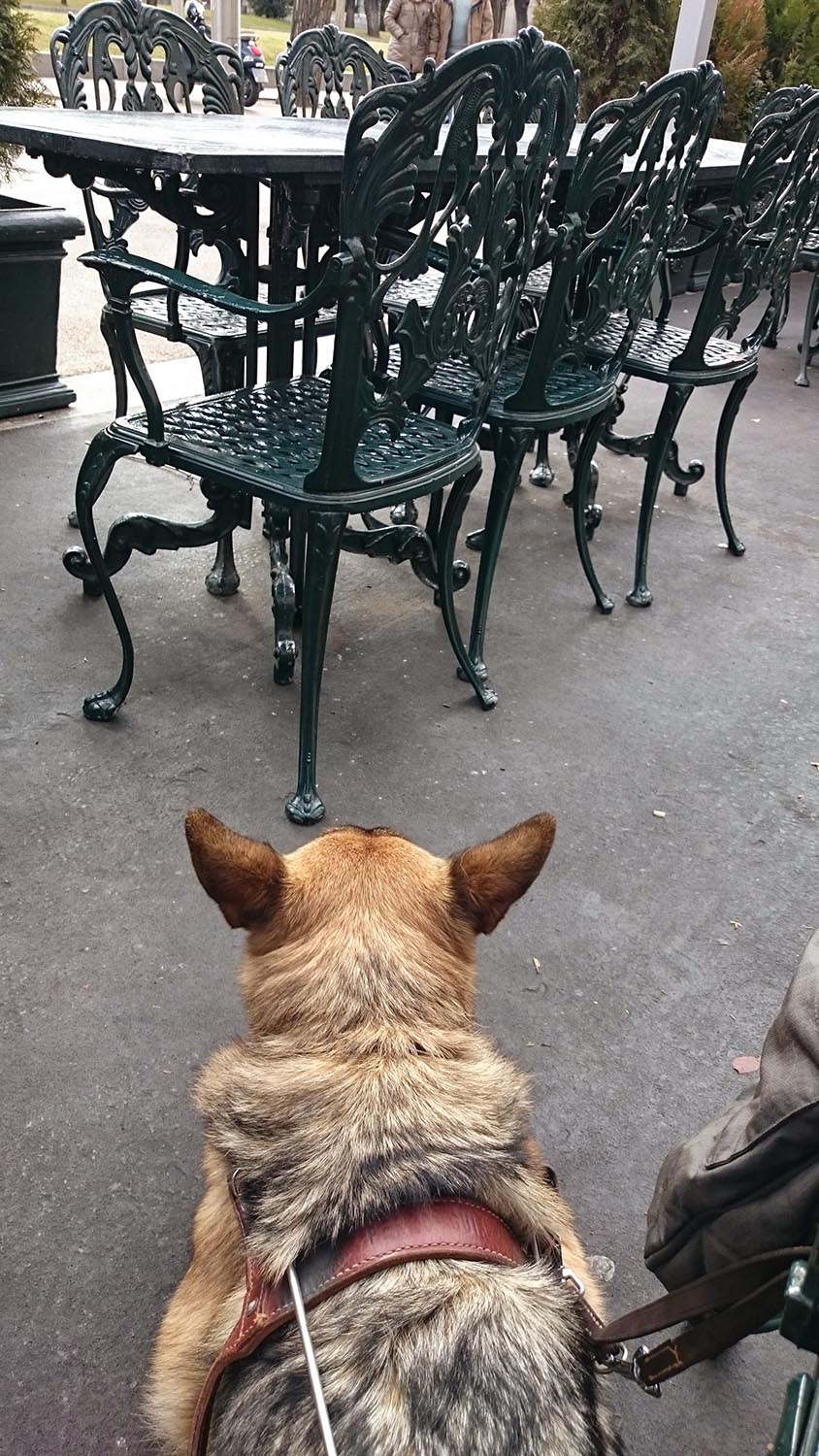 La vida laboral de los perros guía es de 9 ó 10 años. La escuela de la Once en Madrid tiene un espacio para perros jubilados. «Los perros no son nuestros, nos los ceden en usufructo, pero podemos quedarnos con ellos. O te los quedas o se los das a alguien de la familia u otra persona. Hasta la edad de su jubilación viven una vida muy estresante. Asuman una gran responsabilidad en el momento que notan el arnés en el cuerpo».