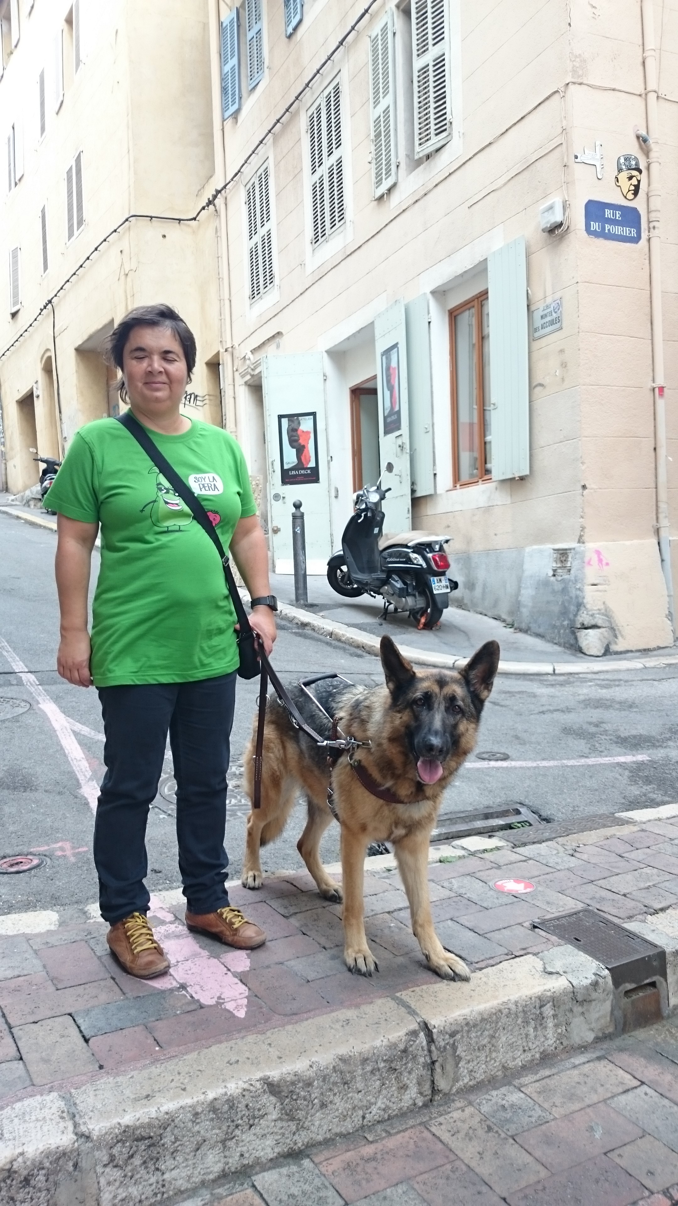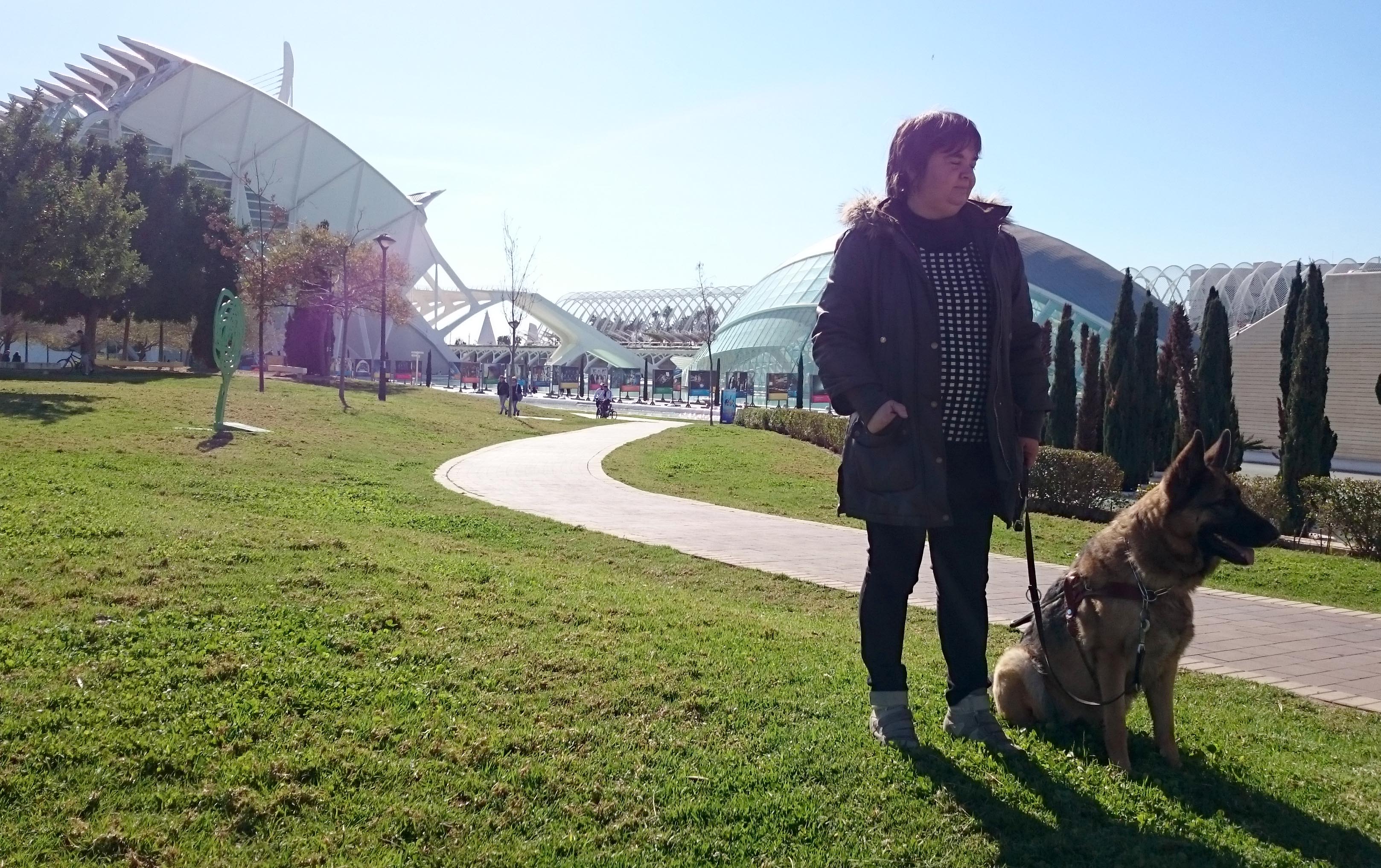 Nati Alias cambió el bastón por un perro hace 15 años por motivos laborales. «Soy afiliada a la Once desde niña», asegura. Pero lo más complicado fue aprender a caminar acompañada de un perro. «La movilidad es diferente que con el bastón». Perro y dueño tienen que practicar para estar juntos. Necesitan un periodo de adaptación de un año.