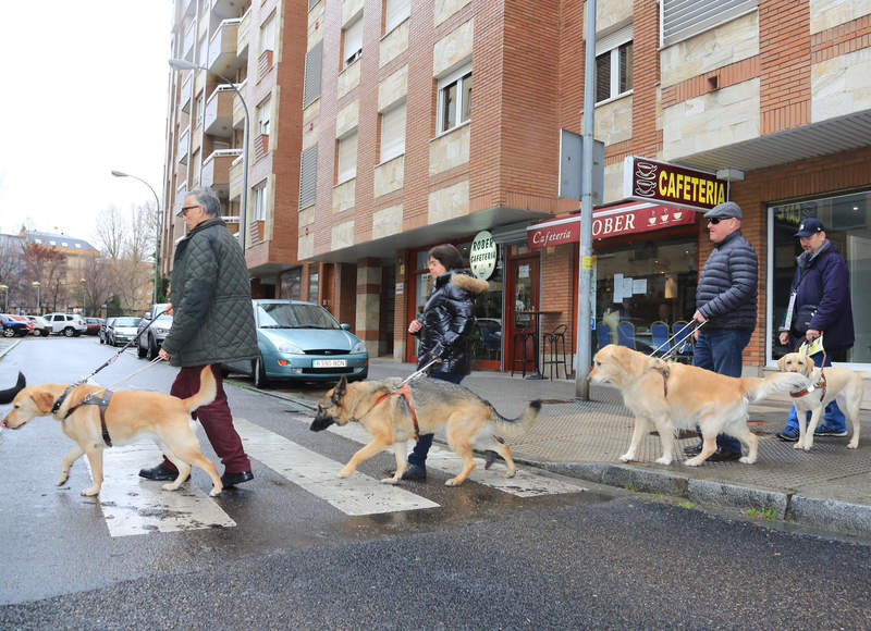 Catorce perros guía facilitan la movilidad de personas ciegas de León, un servicio de la Once que cumple 25 años. La preparación de cada uno de ellos cuesta 45.000 euros y un año de adiestramiento y adaptación.
